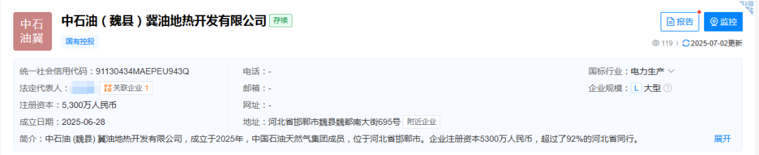近日,中国石油成立了一个专门的地热公司,即中石油(魏县)冀油地热开发有限公司。天眼查显示,公司由中国石油间接全资持股。
