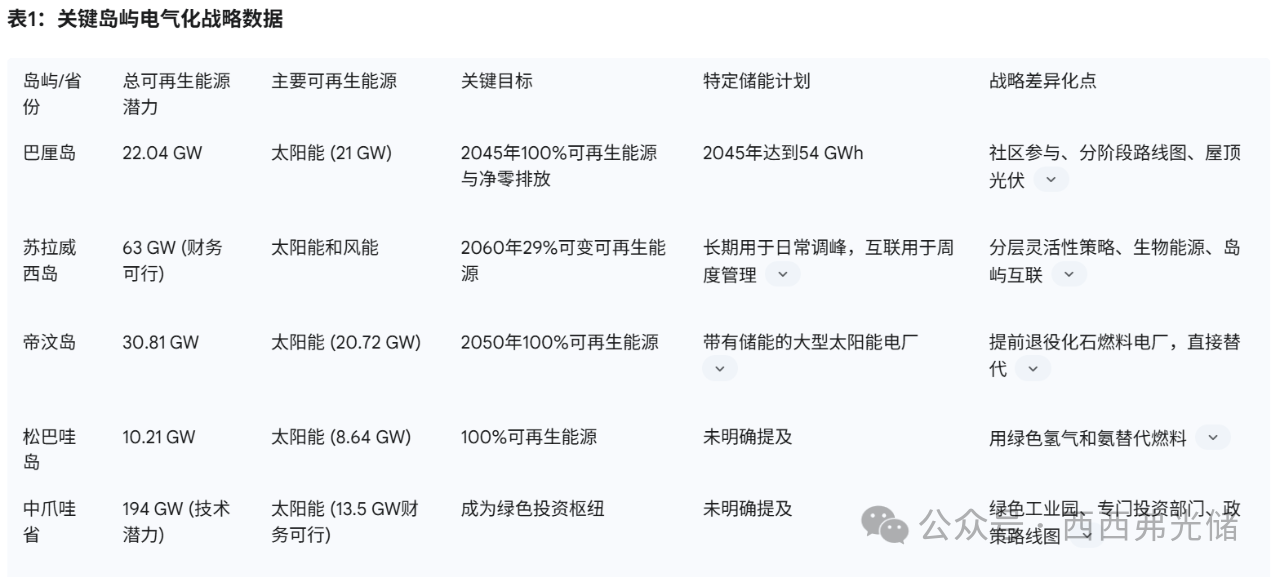 帝汶岛:太阳能与储能的直接替代帝汶岛拥有30.81 GW的能源潜力,其中太阳能占主导地位,达20.72 GW 。该岛的目标是到2050年实现100%可再生能源 。其核心战略是直接用可再生能源电厂取代计划中的化石燃料电厂,尤其是“带有储能的大型太阳能电厂” 。