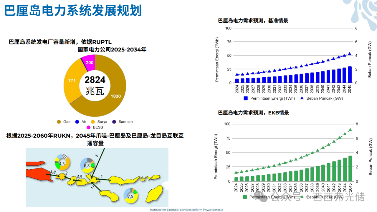 多样的区域战略: 各岛屿和地区正在探索不同的路径。巴厘岛制定了全面的分阶段净零排放(NZE)路线图,将BESS的部署量从2030年的兆瓦时(MWh)级别最终扩展到2045年的吉瓦时(GWh)级别 。苏拉威西岛则采取了分层策略,利用电池进行日常调峰,通过岛屿互联进行周度管理 。而松巴哇岛则提出了一种独特的方法,即用绿色氢气和氨取代化石燃料 。