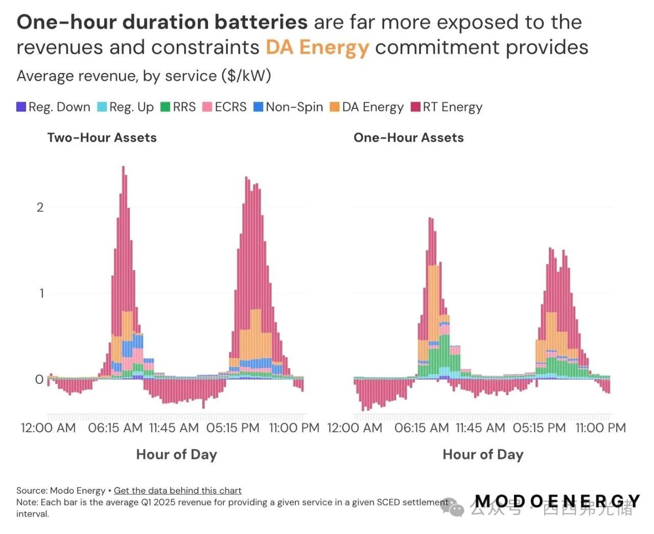 尽管市场火热,但2025年第一季度的储能收入却是过去四年来的最低点,同比下降超过40%。这直接归因于套利空间的收窄。在此背景下,两小时储能系统的战略优势愈发凸显。相比一小时系统,两小时系统具备更高的运营灵活性,能更好地平衡日前和实时市场的风险与收益,避免因电量不足而在价格飙升时被迫高价回购电力,从而实现更高的内部收益率(IRR)预期(两小时系统为13.5%,一小时为9.4%)。