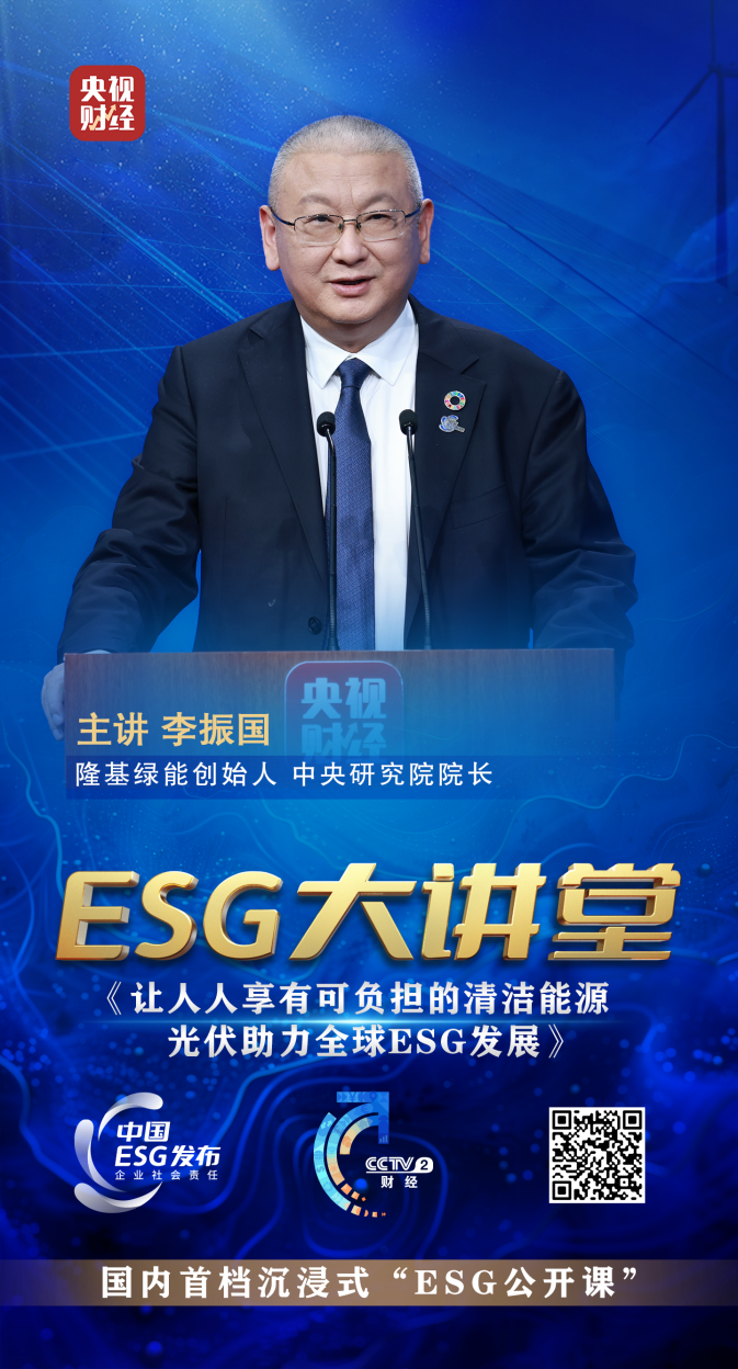 近日,隆基绿能创始人、首席技术官、中央研究院院长李振国作为主讲嘉宾做客总台《ESG大讲堂》,以“让人人享有可负担的清洁能源”为题,揭示出光伏产业天然的ESG基因,分享隆基绿能在环境、社会和治理三大维度的创新思考与实践。