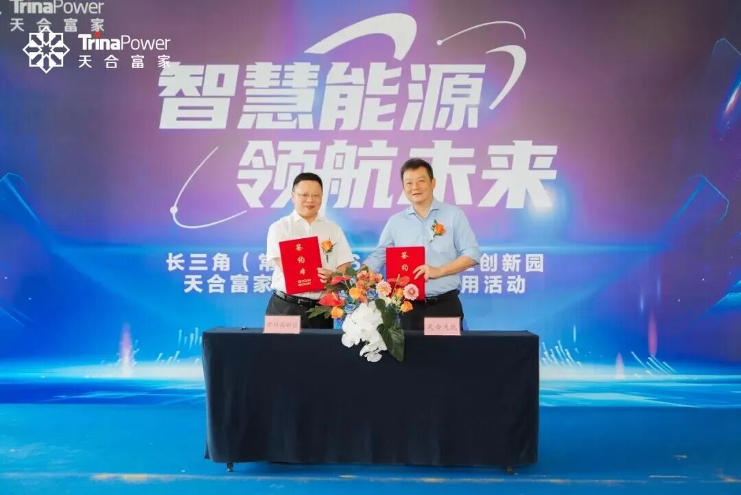 (左:新北区人民政府副区长章俊;右:天合富家副总裁、天合富家工商业&新场景BU负责人曾义)