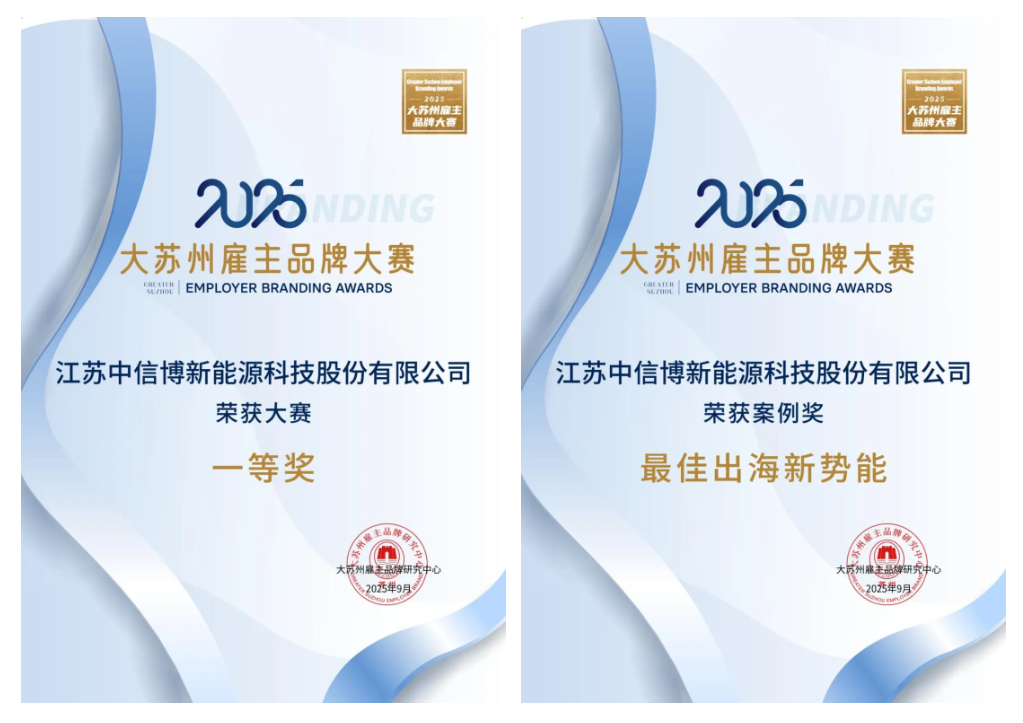 中信博荣膺2025“大苏州雇主品牌大赛一等奖”、“最佳出海新势能”奖,凭借卓越的雇主品牌综合实力于众多企业中脱颖而出,成为苏州地区雇主品牌建设的新标杆。彰显了企业在人才战略与组织发展领域的突出实力。