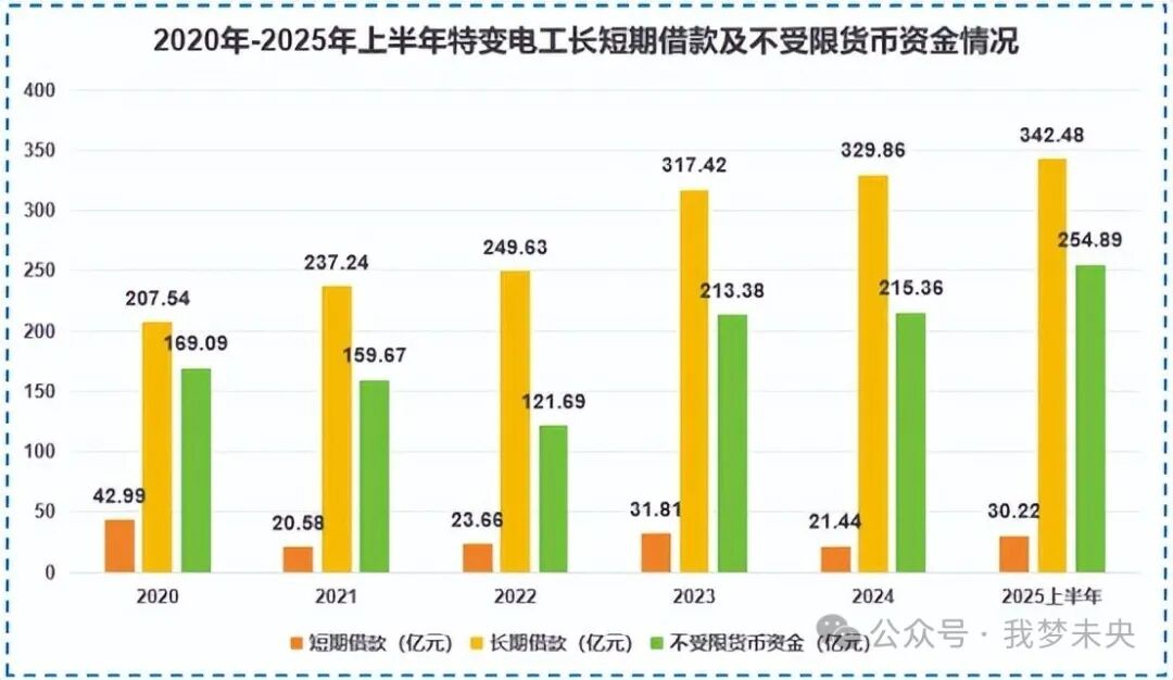 更重要的是,截至2025年上半年,特变电工不受限货币资金总额高达254.89亿元,完全能覆盖短期借款,并能偿付较大部分的长期借款。