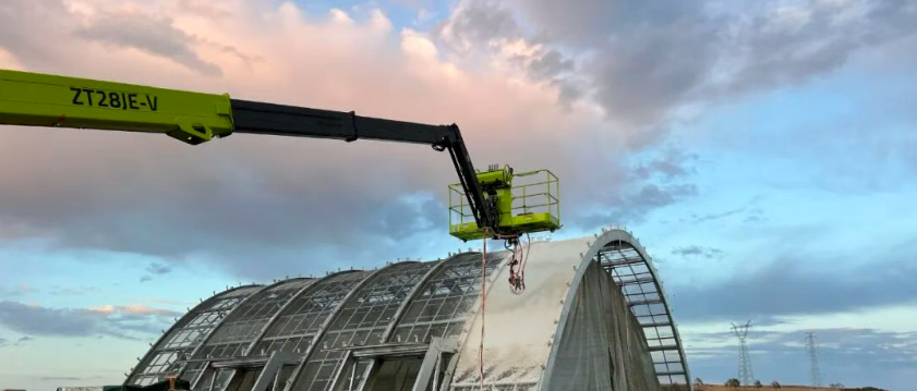 本次参赛的 Solar Ark 5.0 项目旨在建成一座适用于严寒地区的曲面结构零能耗建筑。在项目建造阶段,赛队对施工过程稳定供电以及建造过程的绿色用能提出了高标准要求。晶澳光墅积极响应,在建造阶段提供了光储一体机与并网箱等关键设备,为现场的电动叉车直臂登高车等智能装备提供了高效电力保障,保障施工的顺利与高效。