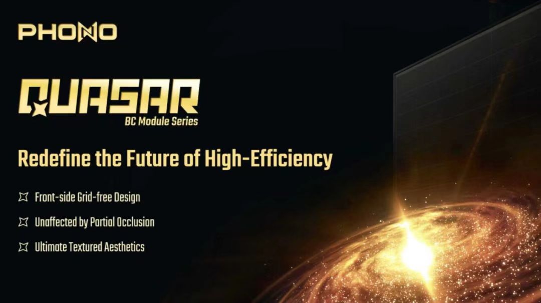 Quasar恒星系列是苏美达辉伦面向高端分布式市场推出的旗舰产品。它采用前沿背接触(Back Contact, BC)技术,通过将所有的栅线电极精密地隐藏于电池片背面,实现了电池片正面无栅线遮挡,不仅外观上达到全黑美学效果,更显著提升了光线吸收率和组件输出功率。