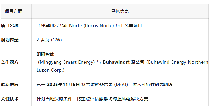 近日,中国明阳智能与菲律宾Buhawind能源公司正式签署谅解备忘录(MoU),共同开启位于菲律宾伊罗戈斯 Norte、规模高达2吉瓦的巨型海上风电项目。该项目不仅是菲律宾目前规划中规模最大的海上风电项目之一,更因其计划采用先进的漂浮式海上风电解决方案而备受全球瞩目,旨在有效应对当地复杂的深水条件。此举标志着项目已从构想阶段正式迈入实质性的可行性研究阶段,不仅为菲律宾实现其可再生能源目标注入强劲动力,也展现了中菲两国在绿色能源领域深化合作的巨大潜力与战略远见。