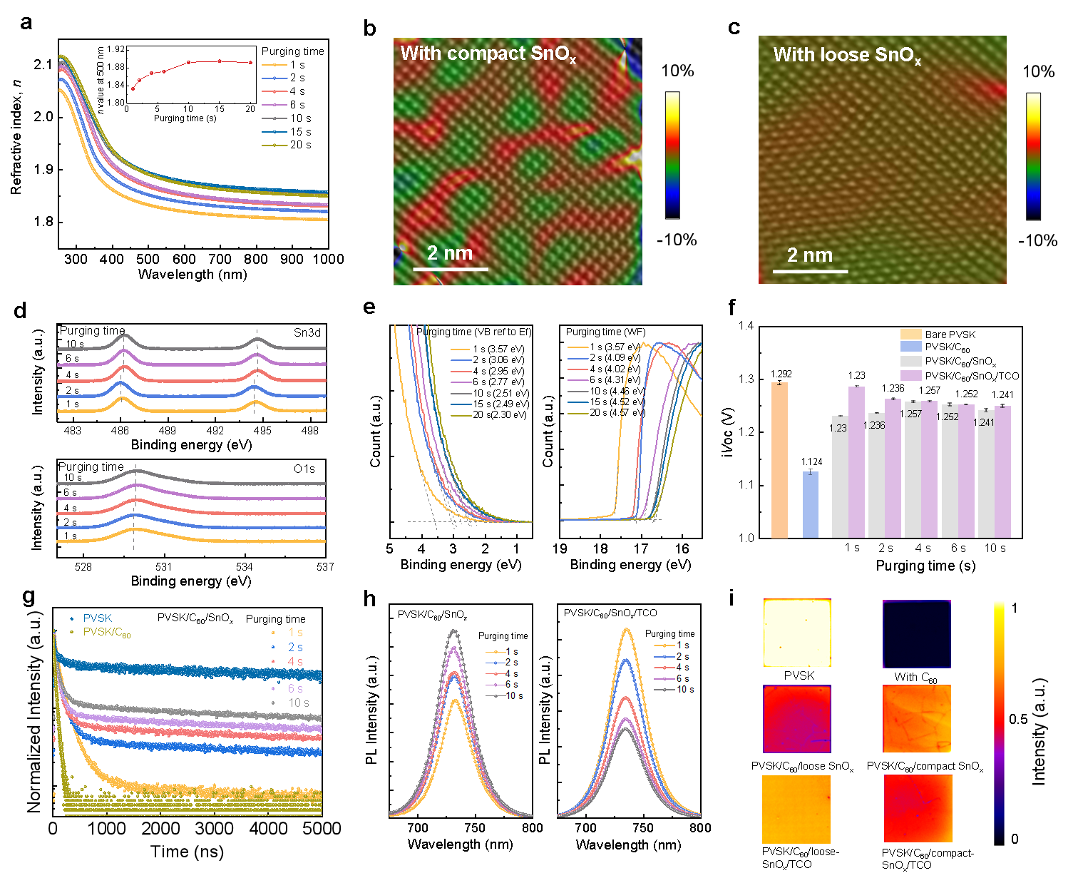 为了解决这一问题,团队采用创新优化的工艺结构设计,构建出疏松加致密的双层缓冲层设计,精心设计的疏松SnOx层能像弹簧床垫一样吸收和耗散应变能,有效缓解制备过程中离子轰击和后续使用中形变带来的机械应力;而致密的SnOx层可确保高效的界面电荷提取和稳固的电学连接。