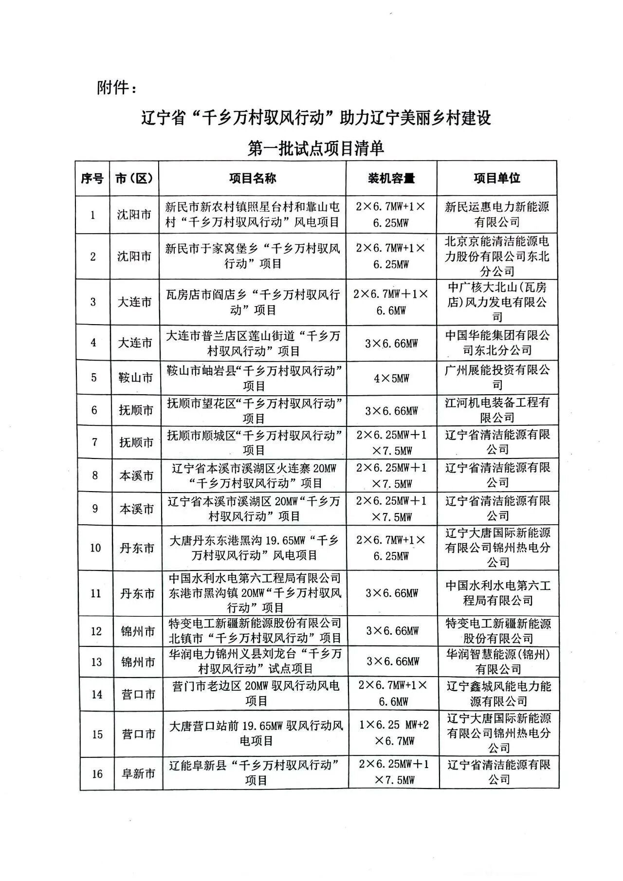 12月1日,辽宁省发改委、辽宁省农业农村厅、国网辽宁省电力有限公司发布《关于下达辽宁省“千乡万村驭风行动”助力辽宁美丽乡村建设第一批试点项目的通知》。正泰新能源与大唐、中核、华电等企业共同入围首批试点项目。根据《通知》,全省第一批试点共28个项目,涉及15个地区(含沈抚示范区),总装机规模55.649万千瓦。