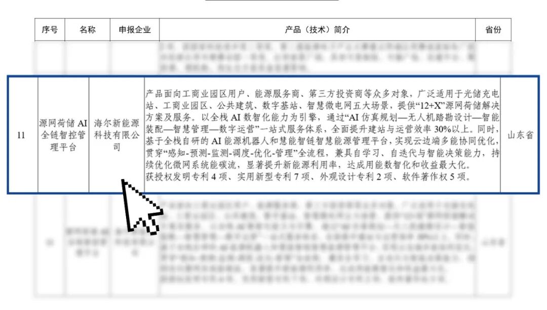近日,工信部完成全国工业领域电力需求侧管理典型案例(2025 年)及第七批参考产品(技术)征集遴选工作,经地方初审、专家评审及工信部复核,有34家企业和 30 项产品(技术)被列入典型案例名单。其中,海尔新能源报送的“源网荷储 AI 全链路智控管理平台”案例成功入选产品(技术)名单,山东省仅有4家企业入选。案例将作为工信部重点推广的先进技术成果,在全国范围内宣传推广。
