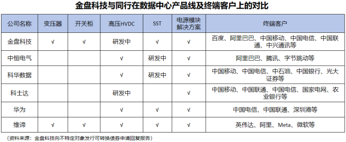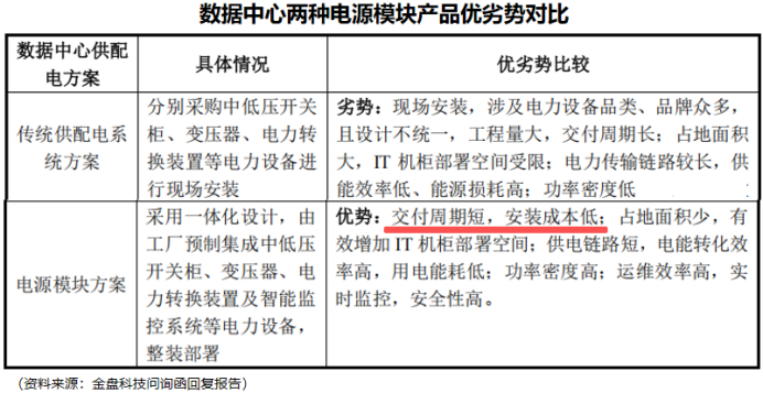 数据中心电源模块就不同了。它主要由电力设备开关柜、变压器、电力转换装置等组装而成,没有特高压那样强的进入壁垒。金盘科技要想攻克它,前期只需外购电力转换装置组装即可。