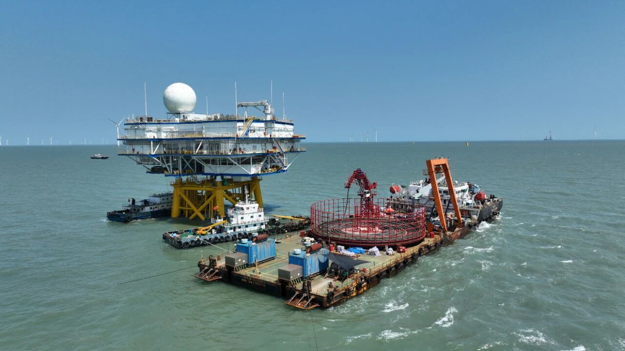 项目场址离岸距离属国内项目最远,海况之复杂、作业窗口之短暂、施工条件之苛刻,均属国内罕见。面对这片“施工禁区”,中天科技项目团队以科技创新与管理创新双轮驱动,迎难而上。