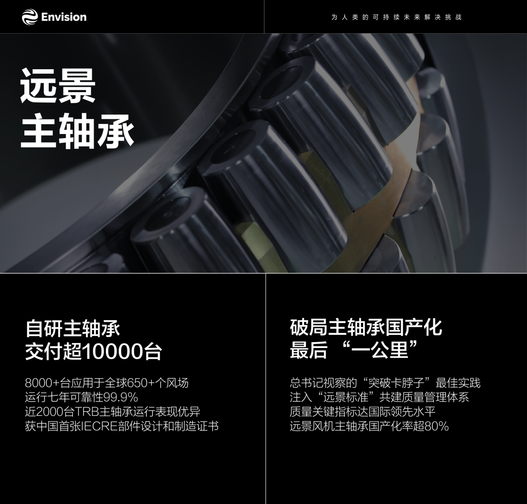 在主轴承国产化“最后一公里”攻坚战中,远景能源与国内供应链深度合作,成为总书记视察时破局风电行业“卡脖子”的最佳实践案例。双方共同构建质量管理体系,用“数据+标准”打破了“黑匣子”,确保关键质量指标达到国际领先水平。目前,远景主轴承国产化率已突破80%,有效提升了供应链安全性与自主可控能力。