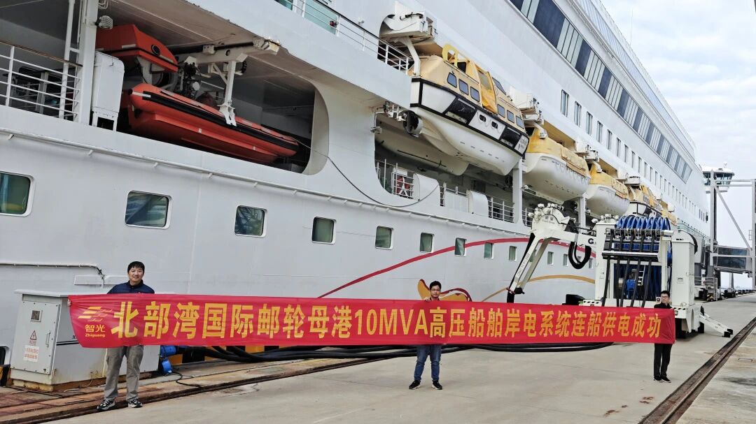 近日,北海邮轮码头岸电工程项目取得重大突破,由广州智光电气技术有限公司(以下简称"智光电气技术")承建的船舶岸基供电系统成功完成首次连船供电,标志着该码头已正式具备为大型邮轮提供稳定、清洁岸电的能力。