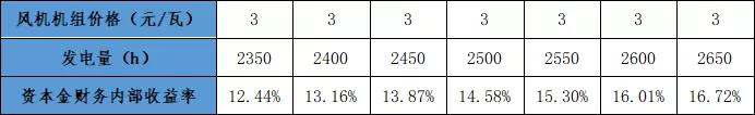 风机价格暂按照3元/瓦进行测算,发电量对于风电项目投资收益影响见下表: