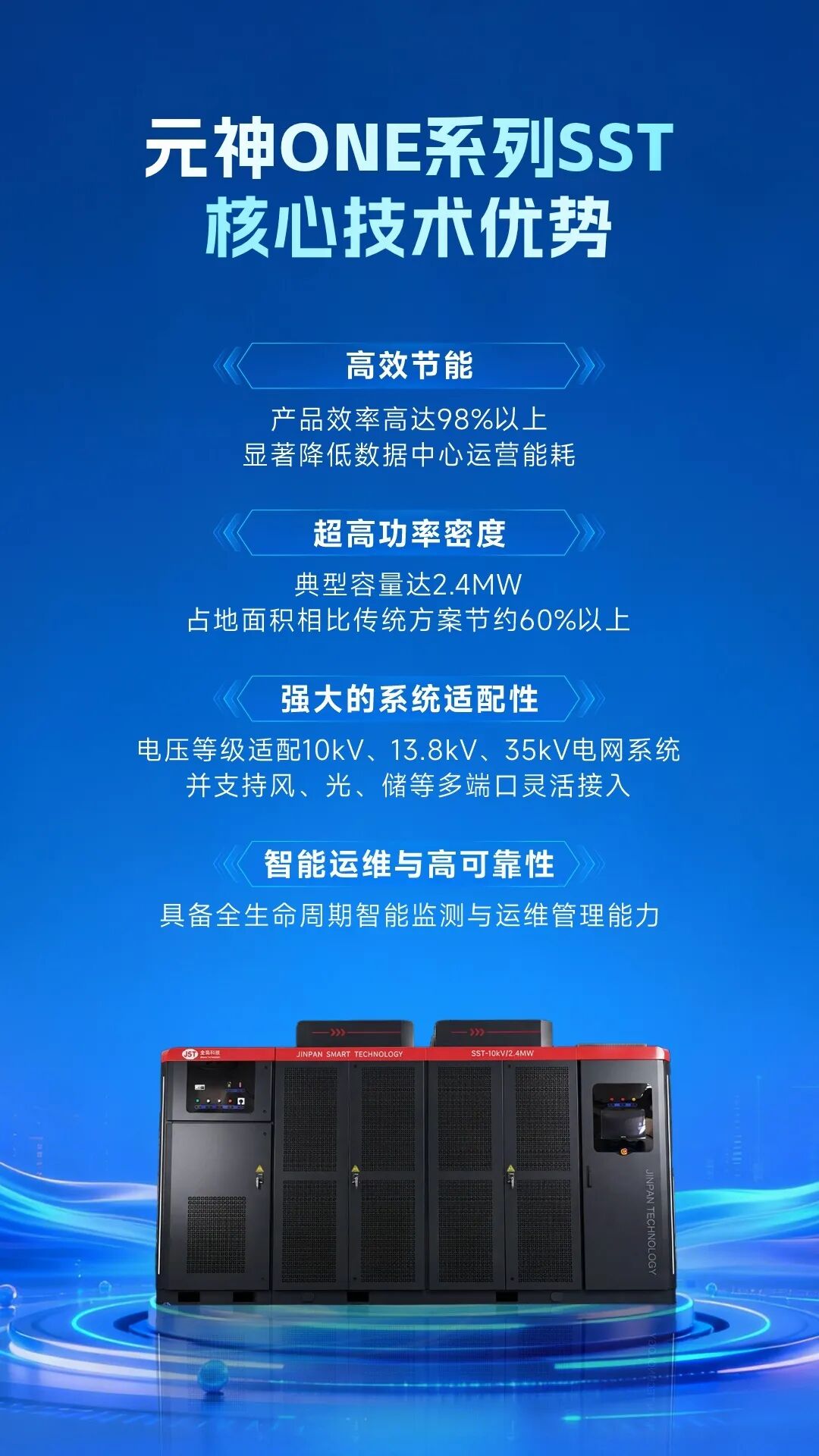 金盘科技元神ONE系列SST精准匹配最新一代AI数据中心对高压直流(HVDC)800V供电系统的需求,为持续爆发的AI算力提供强大、可靠的电力支撑。