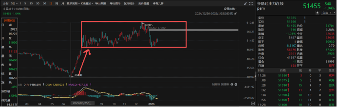 虽然上半年业绩大幅下滑,但好在这块业务未来的预期还是比较乐观,从多晶硅价格来看,从2025年下半年开始,价格已经开始大幅回暖,相比历史低点的30000元/吨,已经大幅上涨,目前价格在4.8万到6.1万元/吨附近震荡,均价大致从3.7万涨到了5.3万元/吨,有周期复苏、业绩回暖的预期。