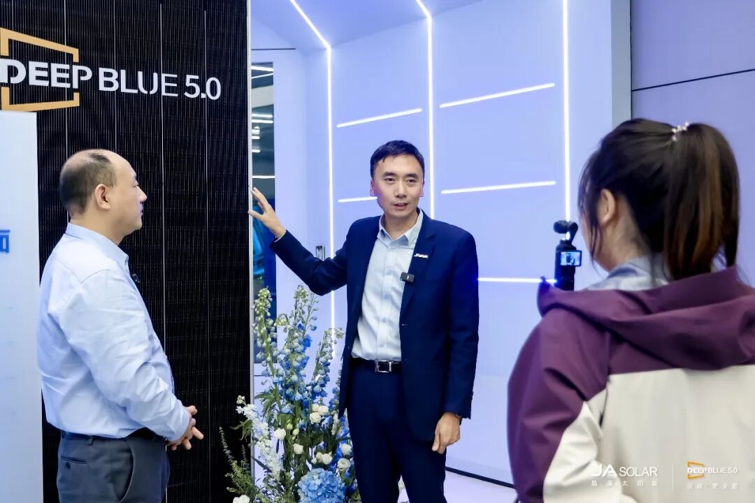 作为DeepBlue 5.0诞生的主要参与者,晶澳科技产品与解决方案研发中心总裁欧阳子,携组件研究、解决方案等相关负责人集体亮相,与全球媒体面对面交流,系统讲述了DeepBlue 5.0从底层技术到产业落地的完整路径。