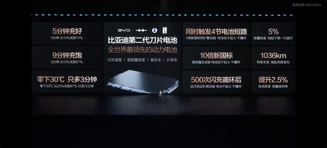 3月5日,在深圳举行的技术发布会上,比亚迪正式发布第二代刀片电池与闪充技术。