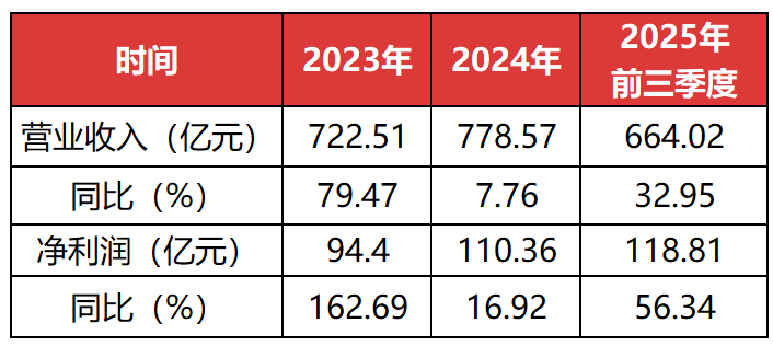 阳光电源近三年营收及净利润(截止2025年Q3)