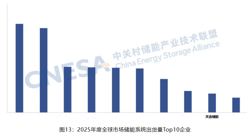 在展会同期由中关村储能产业技术联盟发布的“2025年度中国储能企业系列榜单”中,天合储能凭借卓越的系统集成能力、全球化的市场布局以及稳健的交付实力,强势入围 “2025年度全球市场储能系统出货量Top10”榜单,位列全球第九。
