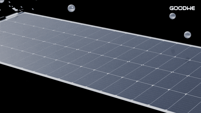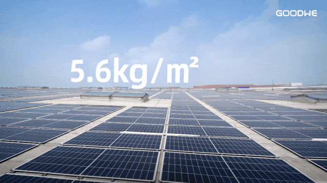 固德威银河 7 号轻质组件,以仅5.6kg/㎡的超轻自重,完美适配场馆低荷载屋面需求;采用专属胶粘式安装方案,无需打穿屋面、无需额外支架导轨,全程不破坏原屋面高分子防水层,从根源上杜绝渗漏风险,真正实现了光伏系统与建筑屋面的友好共生。