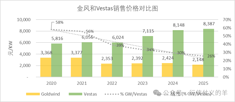 2025年两家毛利率均有少许回升,金风科技以维斯塔斯25%的单价收获了略高于维斯塔斯的毛利率,中国供应链成本优势突出,也反映了国内市场竞争之激烈。