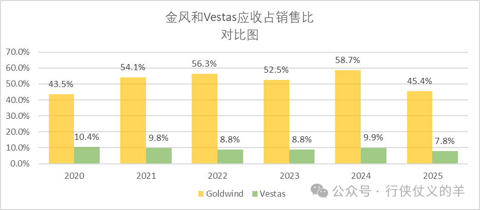 2025年两家公司存货水平都有所下降,但维斯塔斯平均存货周期高于金风科技1个月,因为维斯塔斯最大生产基地在中国,主要市场在欧洲和美洲,金风科技的主要生产基地和市场都在中国,维斯塔斯需要更多的在途存货。