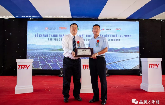 近日,由晶澳太阳能供货的越南富安华会257MW光伏电站成功举行COD(商业运营)庆典仪式,越南富安省政府、绥和市政府、项目业主泰国B.Grimm公司和TTVN Phu Yen公司、项目总承包方中国能建山西院、越南电力公司、晶澳太阳能共同出席仪式,庆祝项目顺利并网并提前投入商业运营。