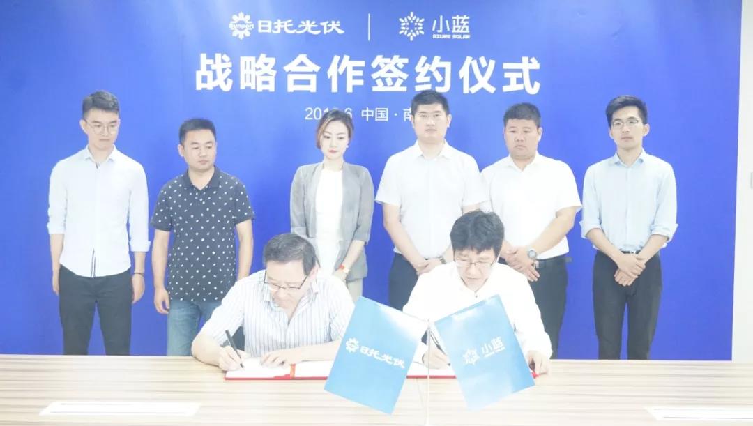 2019年6月26日,南京小蓝清洁能源科技有限公司(以下简称南京小蓝)与江苏日托光伏科技股份有限公司(以下简称日托光伏)在日托光伏总部——南京市九龙湖国际企业总部园签署了战略合作协议,南京小蓝将协同日托光伏MWT创新产品,共建户用光伏市场生态圈。