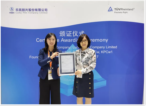 乐凯胶片股份有限公司KPCw、KPCw1型号背板,荣获TÜV莱茵颁发的2PfG 1793 11/17证书。