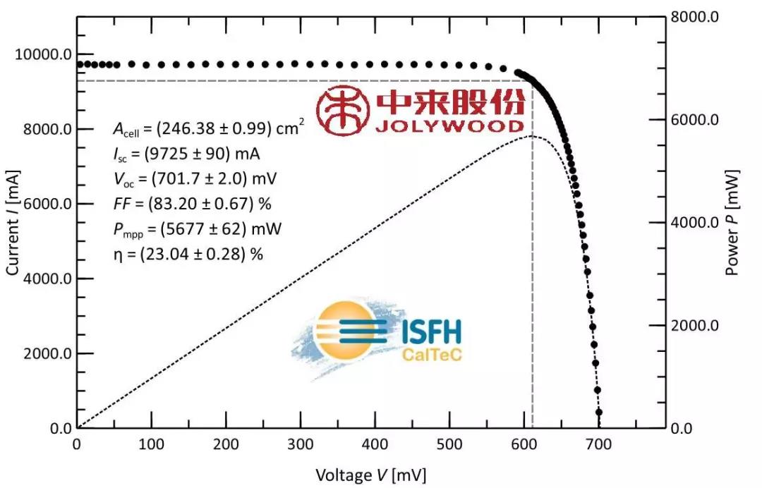 泰州中来光电技术研发部致力于可量产化的双面钝化接触电池的开发,在现有生产工艺流程的基础上,通过工艺优化取得了>23%的电池平均转换效率,经过德国ISFH独立认证,转换效率达到23.04%,Voc超过700 mV,如图7所示。近期批次最高效率达到23.3%,具体的电性能参数整理于表3,并计划在今年第三季度把相关工艺导入量产。