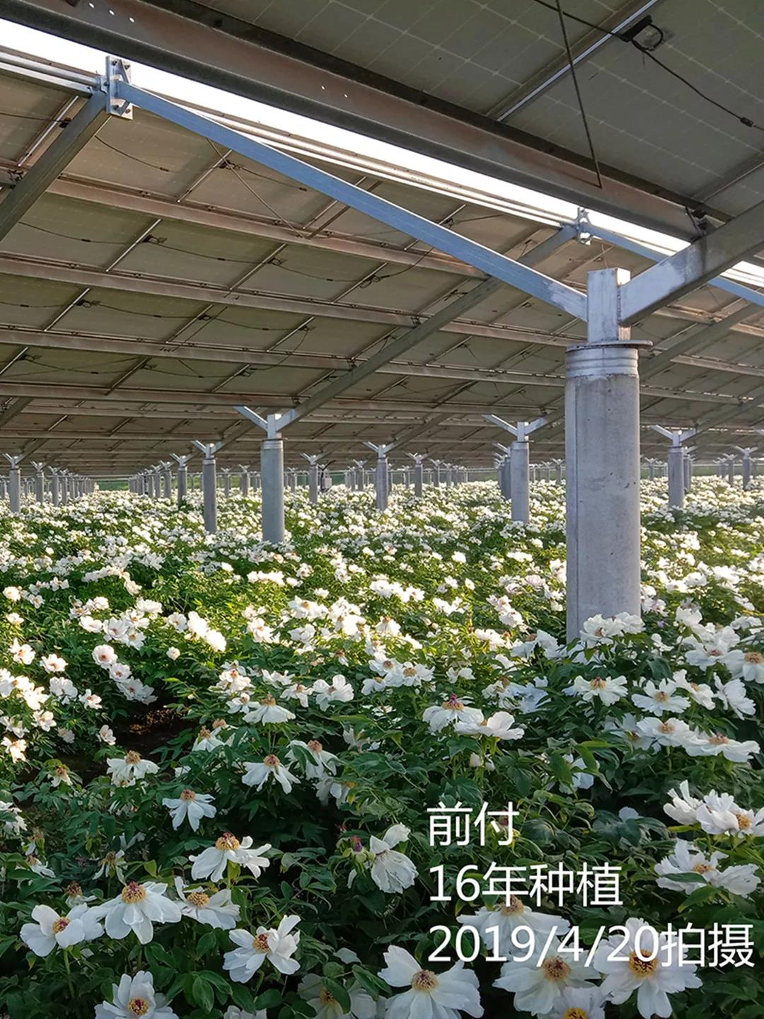 因此,种植油用牡丹要比种植传统农作物每亩地多收入1000多元。牡丹产业在巩固发展观赏牡丹和药用牡丹的基础上,“光伏+油用牡丹”的发展已是大方向、大趋势。