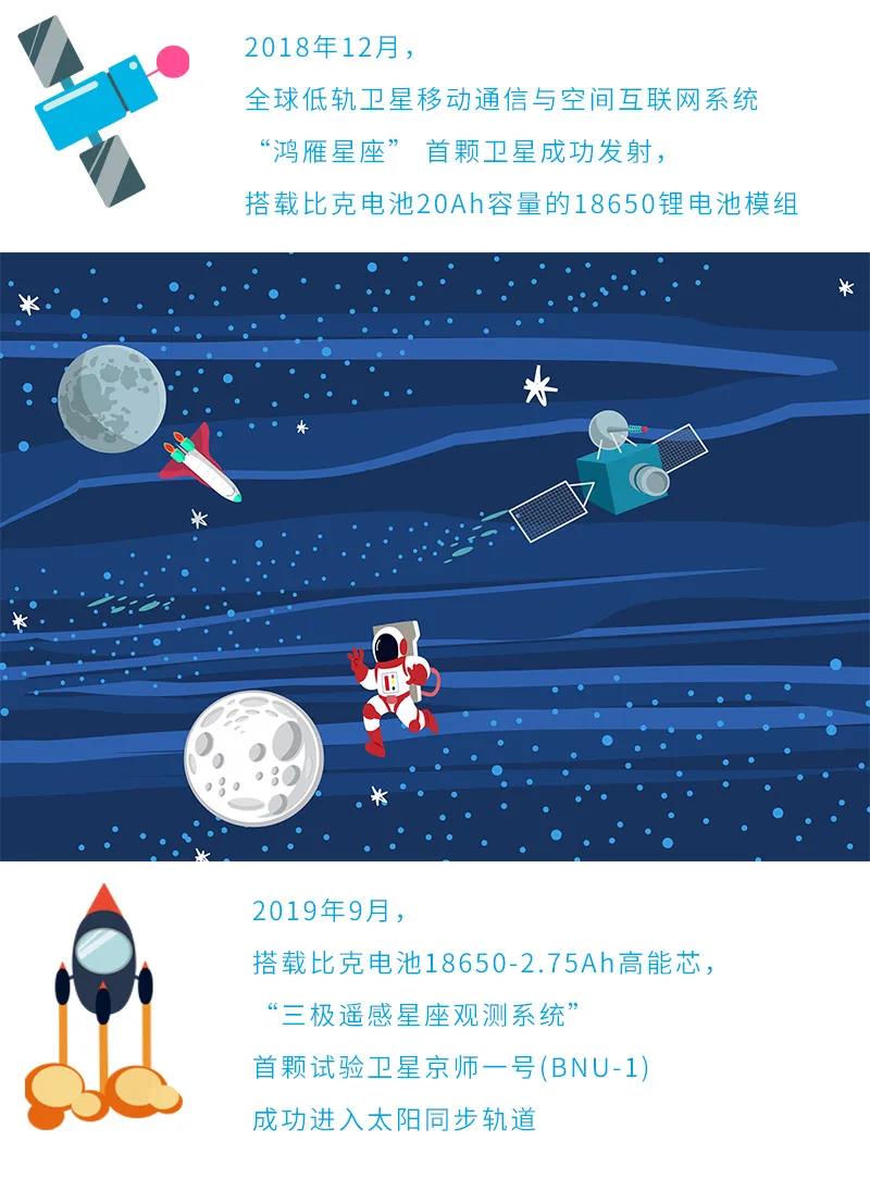 自2015年首次涉足航空领域至今,比克电池已经为多颗航天卫星提供能源“心脏”,助力其成功升空。