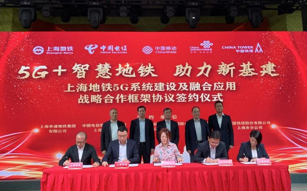 5月18日,申通地铁集团与上海电信、上海移动、上海联通、上海铁塔签署战略合作框架协议并举行开工仪式,在上海地铁5G系统建设与融合应用方面展开合作,经过6个月建设,确保今年进博会前完成全市297个地下车站站厅、站台的5G网络覆盖,并在车站乘客服务、运营安全管理、设施智能运维等方面探索5G创新应用。市经信工作党委书记陆晓春、市经信委副主任张建明、市交通委副主任杨小溪、市国资委总经济师陈东、市通管局二级巡视员范志钢,以及申通地铁集团、上海电信、上海移动、上海联通和上海铁塔等公司领导出席签约开工仪式。