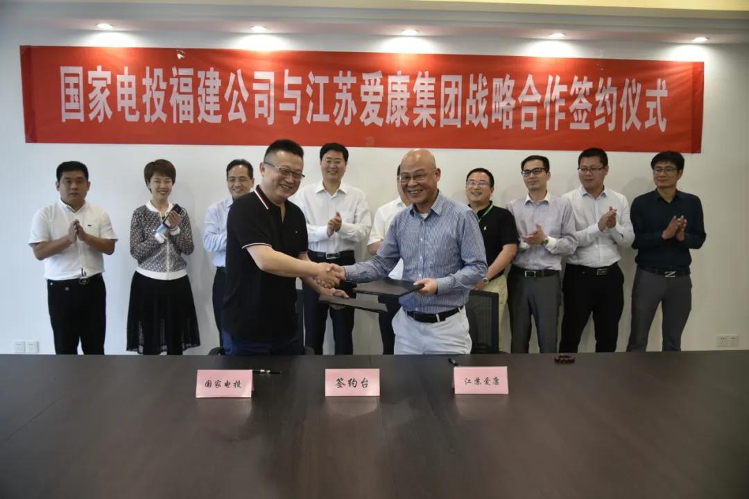 爱康集团董事长邹承慧、国家电投福建公司总经理鲁珏共同出席仪式并签署了战略合作协议。依据协议,双方将在光伏项目合作开发建设、光伏电站并购、爱康科技旗下子公司异质结太阳能电池产研结合、光伏电站运营服务等领域全面深化战略合作,并建立密切的合作伙伴关系,共同促进双方的产业发展。国家电投集团福建电力公司漳州国电投新能源公司总经理陈伟及苏州爱康能源工程技术股份有限公司副总经理朱润共同签署了项目合作协议,约定共同推进山西、河北光伏发电项目的合作,项目规划容量合计近400MW。爱康集团旗下子公司苏州爱康能源工程负责项目的开发、建设、运营,国家电投福建公司根据项目建设进展逐步完成对项目公司的增资并购。
