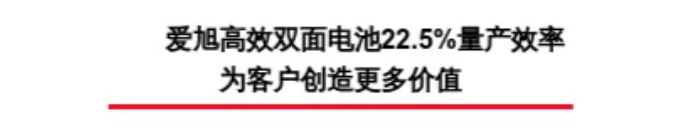 爱旭致力于为客户提供高效率、高可靠性、高发电量的产品。始终专注于高效电池的研究开发,提升竞争优势。对于双面电池,追求电池的正面效率最大化,背面效率一致化,通过双面双测技术,为客户提供正面效率和背面效率分别一致的电池,进一步提升电池可靠性。双面电池出货达2GW是爱旭发展的里程碑,此后爱旭将更加用心,坚持以客户为中心,创造超越客户期望的商业价值!