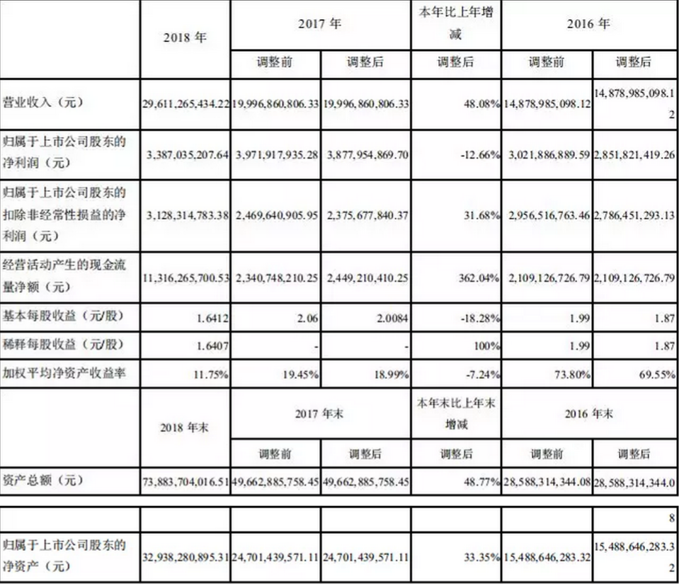 据其年报显示,2018年,宁德时代总营收达到296.11亿元,同比增长48.08%;净利润则下降12.66%,但也有33.87亿元。