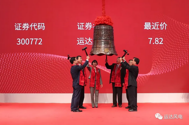 2019年4月26日,浙江运达风电股份有限公司(股票简称:运达股份,股票代码300772)首次公开发行A股上市仪式在深圳证券交易所隆重举行。
