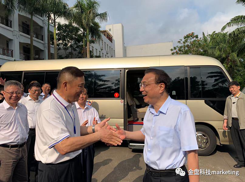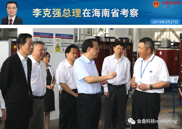 3月27日,在出席博鳌亚洲论坛期间,中共中央政治局常委、国务院总理李克强在在海南省委书记刘赐贵、省长沈晓明、海口市委书记张琦、市长丁晖等领导陪同下,来到海南金盘智能科技股份有限公司考察调研。