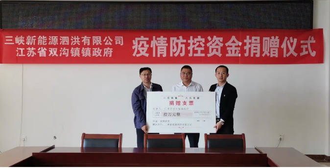 4月29日,三峡新能源泗洪项目公司向江苏省泗洪县双沟镇政府捐赠10万元,用于支援当地开展新型冠状病毒感染肺炎防控工作。双沟镇党委、政府真诚感谢三峡新能源,并表示,此次捐赠充分体现三峡集团作为央企的责任担当,三峡人对双沟人民的深情厚爱。捐赠的防疫资金将极大促进疫情防控工作开展,为双沟镇提供有力支持和帮助。