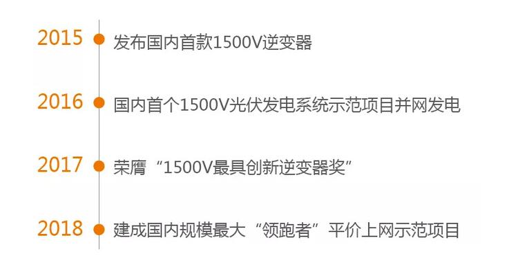 2015年,中国首款1500V逆变器在阳光电源诞生,此后,1500V系统开始被光伏业界人士频繁提及,而阳光电源也开始将1500V技术应用于实际项目中,并推动1500V系统从第一批领跑者基地试点到第三批领跑者广泛应用,不断推进平价上网进程,引领中国光伏产业发展。