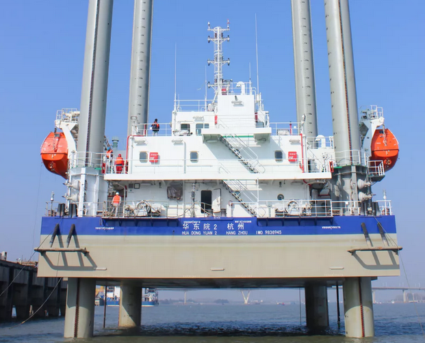 华东院在海洋勘察中率先投入自建自升式勘探平台,目前,拥有3座自升式海洋勘探平台,其中,华东院2号、3号平台最大作业水深35米,主体平面长29.0米、宽22.0米,在35米最大作业水深能够满足在7级风及以下进行作业;在20米水深能够在11级风及以下原地抗风,实现在东海、黄海等相关海域熟练作业,具有超强的近海勘测作业能力。