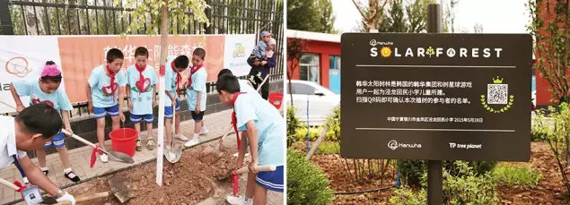 2014年,韩华在韩国建立了第三座太阳能森林,让孩子们体验了在尘土和黄沙中创造自然生命的经历。为了防止土地沙漠化,韩华集团努力为森林创造纯净的水源,控制虫害。