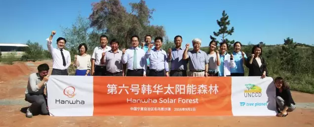 2013年9月,韩华在中国灵武市的毛乌素沙漠建造了“太阳能森林2号”。