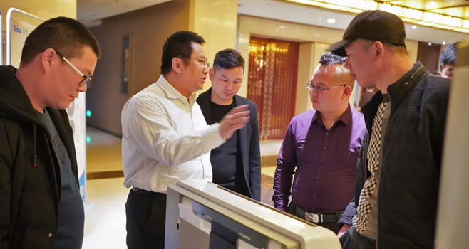 中国户用与工商业光伏品牌推广联盟理事长 天合光能副总裁 天合智慧分布式能源价值群总裁张兵、天合智慧分布式能源价值群常务副总裁徐劲松,分站组织会议并率领各分公司核心业务团队现场与经销商朋友互动交流。
