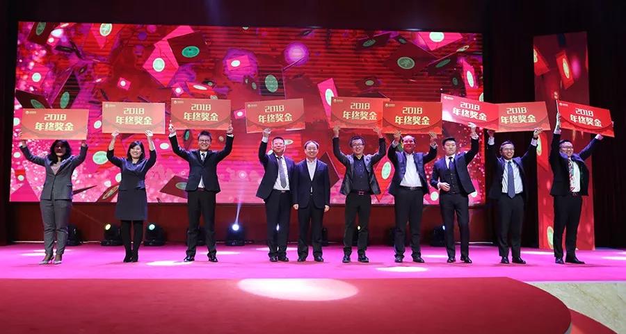 随后,集团董事局主席王玉锁上台给各一号位颁发年终奖。各一号位和各行业公司事业伙伴们众志成城,斗志昂扬。