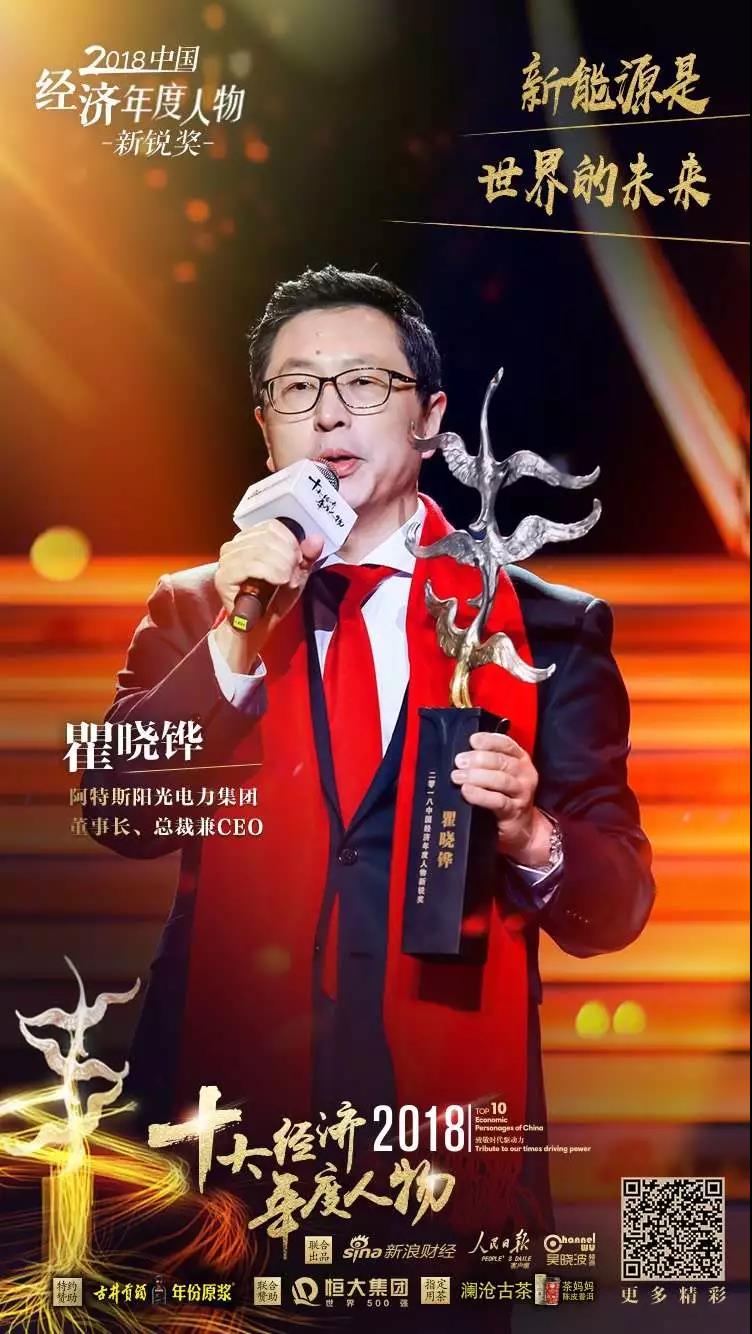 “新能源是世界的未来!”阿特斯董事长瞿晓铧荣膺“2018年十大经济年度人物新锐奖”