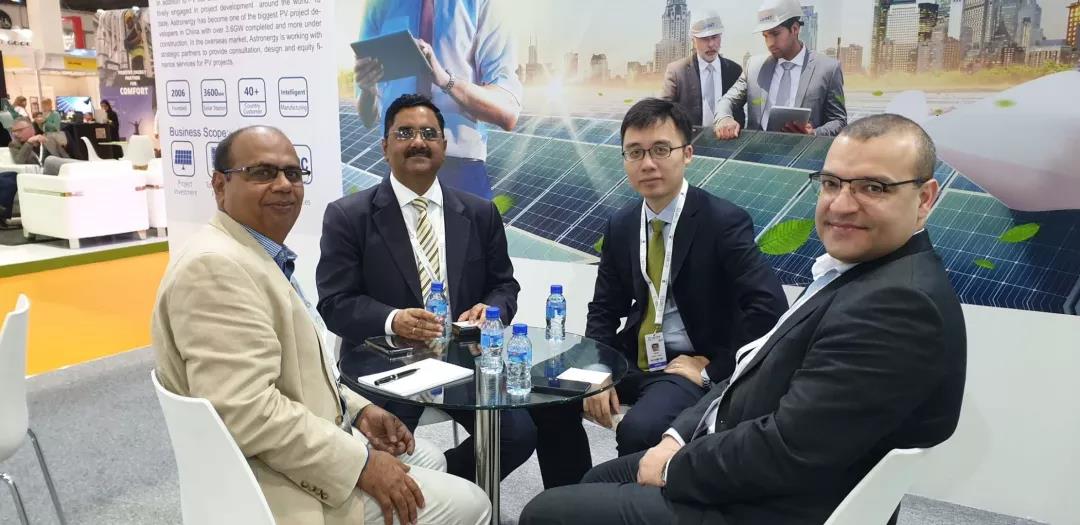 正泰新能源一直积极参与全球光伏项目开发,投建电站遍布十多个国家。在中东地区,正泰为客户提供高效组件的同时,参与了多个国家的项目开发建设,在当地业界获得一致赞誉。展会期间,来自北非、印度、斯里兰卡等中东各国的新老客户莅临正泰展会,就产品与未来的合作进行了深入交流。