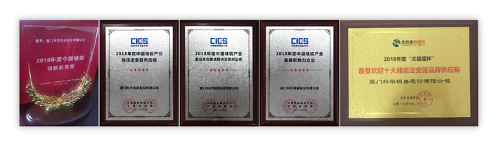 基于优秀的市场表现,突出的系统集成、行业拓展能力,科华恒盛2018年连连摘得业内荣誉——“2018年度中国储能创新应用奖”“2018年度中国储能产业最佳逆变器供应商”“2018年度中国储能产业最佳系统集成解决方案供应商”“2018年度中国储能产业最具影响力企业”“2018年度最受欢迎十大储能逆变器品牌供应商”......